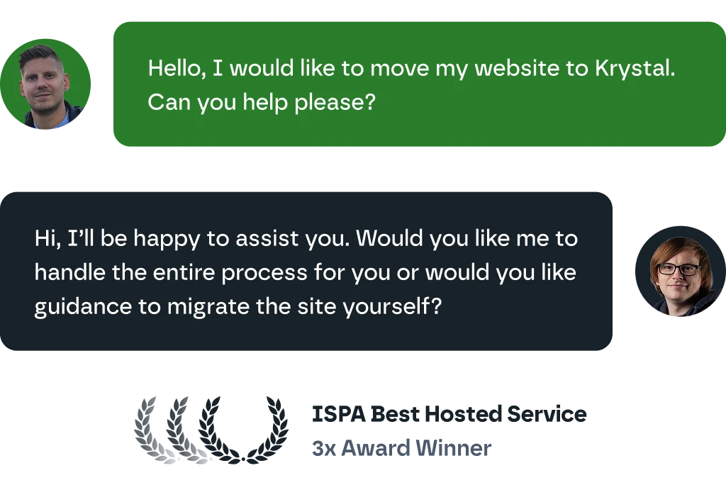 Currently hosting your website elsewhere? Join the thousands of website owners who enjoy fast, secure and reliable web hosting here at Krystal. Our expert team will handle everything so your website stays up and running without downtime or data loss - and you can claim free credit for switching!